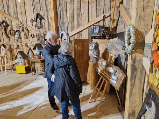 Dziś w Puszczy - Przestrzeni Kreatywnej odbył się wernisaż wystawy pochodzącego ze Świerż Rafała Jankowskiego "Nadbużańska historia dłutem opowiedziana".